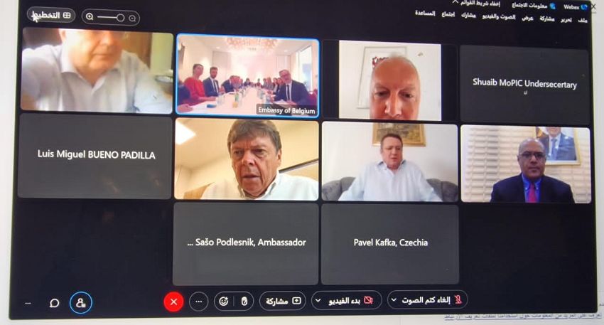 بحث وزير التخطيط والتعاون الدولي، القائم بأعمال وزير الاتصالات وتقنية المعلومات الدكتور واعد باذيب، اليوم، مع سفراء دول الاتحاد الأوروبي، سبل تعزيز التعاون في قطاعات التنمية والاتصالات .